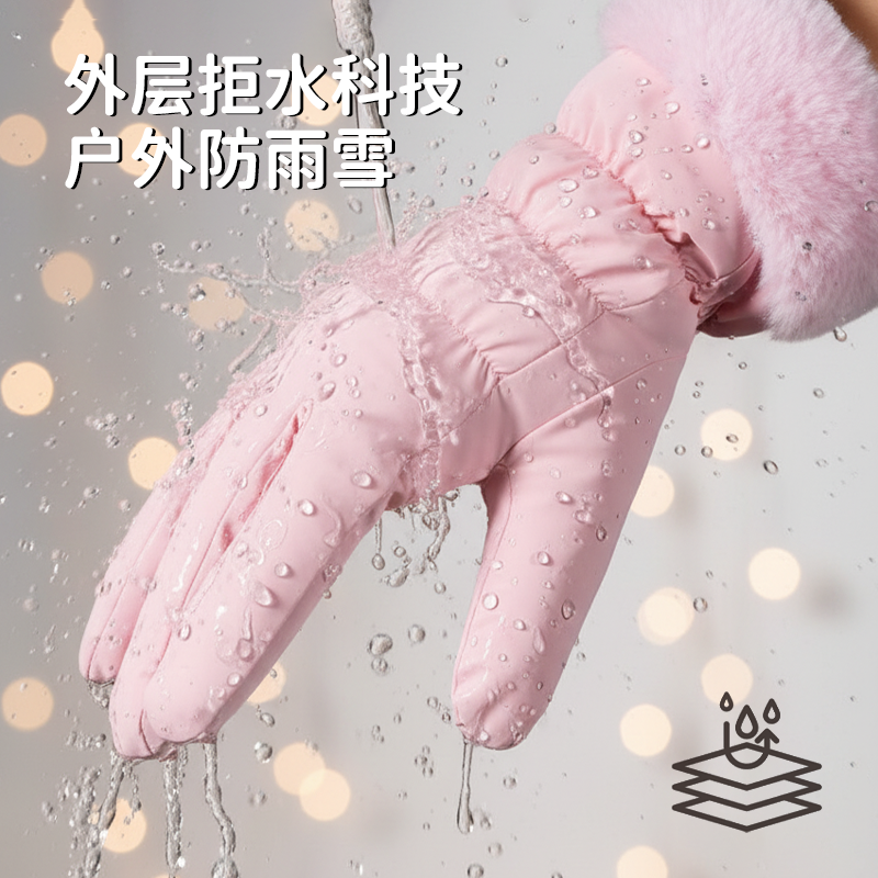 手套冬季女士保暖触屏骑行电动车东北防寒加绒加厚防风棉骑车防水