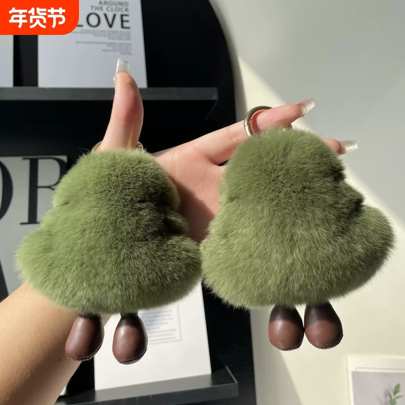 可爱小树獭兔毛圣诞树包包挂件钥匙扣车挂饰皮草毛绒玩偶生日礼物