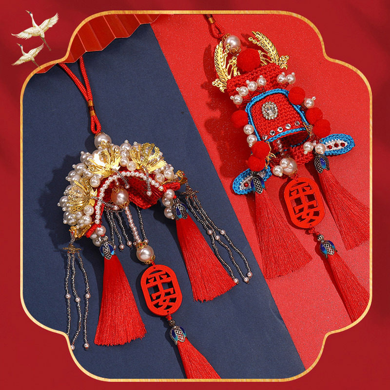 2025新款车挂件手工diy材料包凤冠霞披后视镜挂饰平安福男女礼物