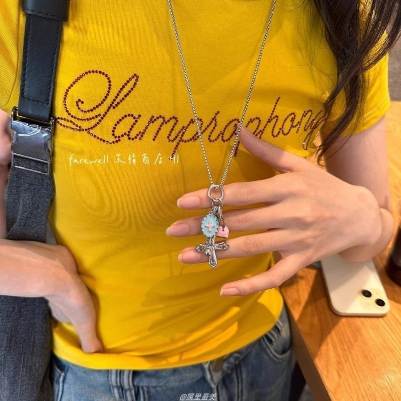 多巴胺项链女款2025新款甜酷十字架毛衣链小众独特颈链