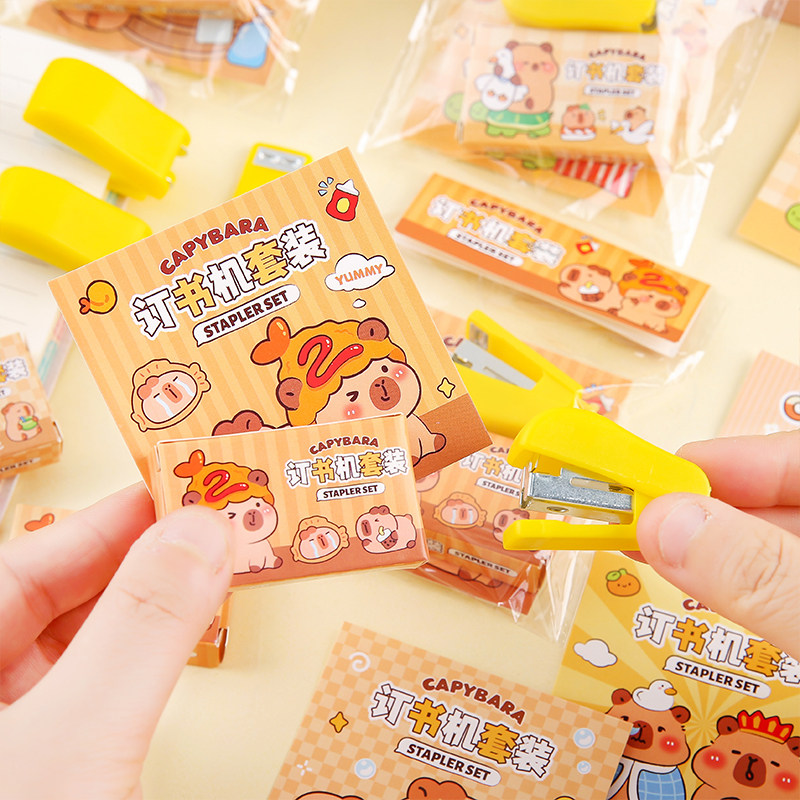 可爱卡通迷你订书机套装便携学生办公省力订书器文具用品卡通公仔