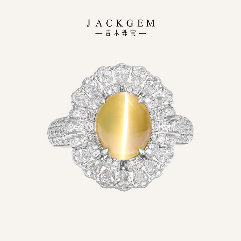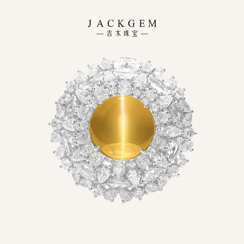 【鎏光岁月】猫眼石戒指18k金黄宝石戒指金猫眼石吊坠戒指两用C0