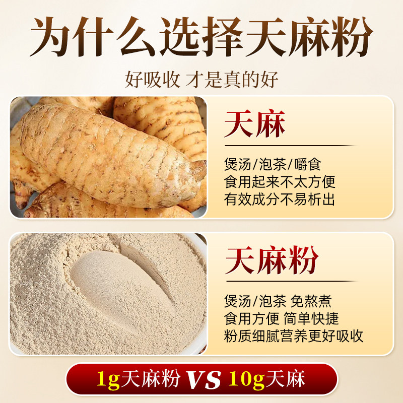 北京同仁堂天麻粉中药材云南昭通纯超细滋补泡水煲汤正品食用