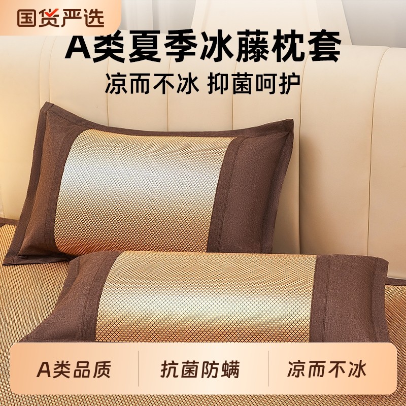 夏季冰藤枕套一对装夏天凉爽冰丝枕头套学生宿舍枕芯套夏凉冰感