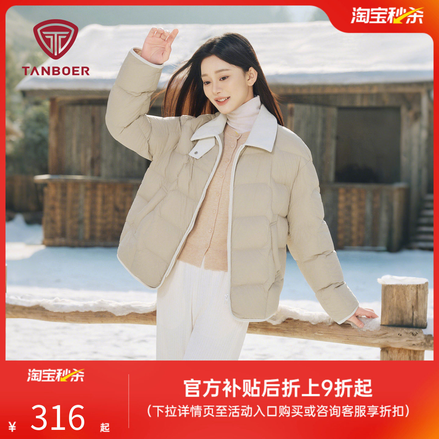 坦博尔户外衬衫领羽绒服女款新短款轻薄款羽绒保暖外套休闲时尚