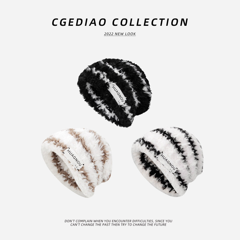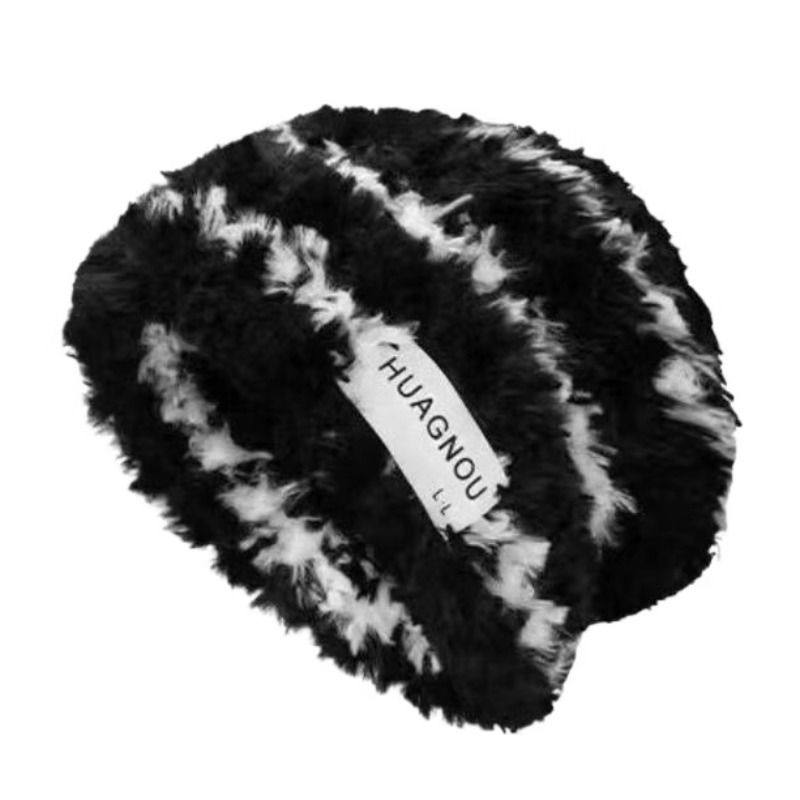 秋冬毛绒帽子保暖护耳帽显脸小黑白毛线帽多规格