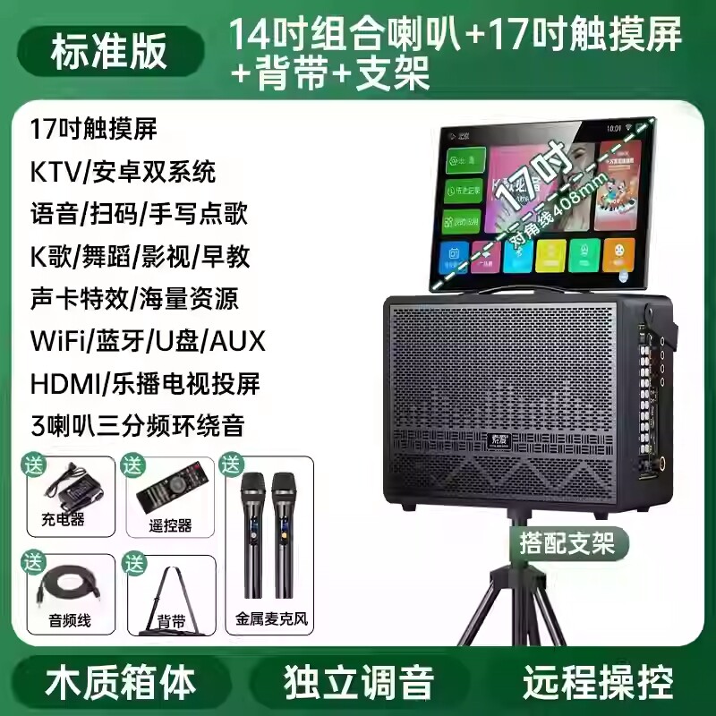 索爱广场舞音响带显示屏户外k歌歌机点歌一体机家庭ktv音响套装点