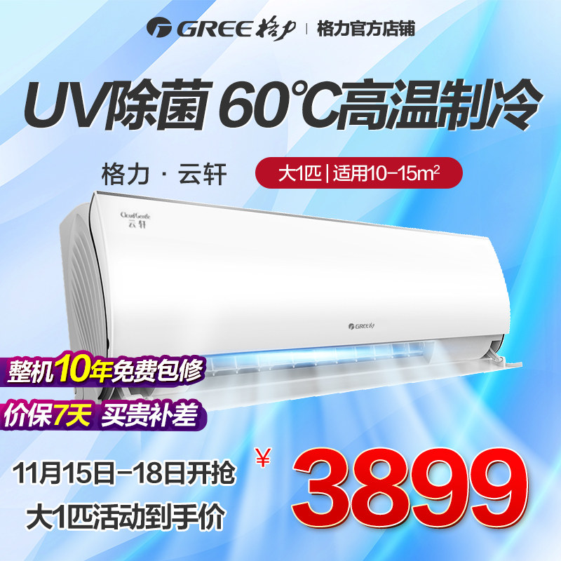 格力空调大1匹智能变频冷暖家用新一级除菌UVC挂机官方旗舰店云轩