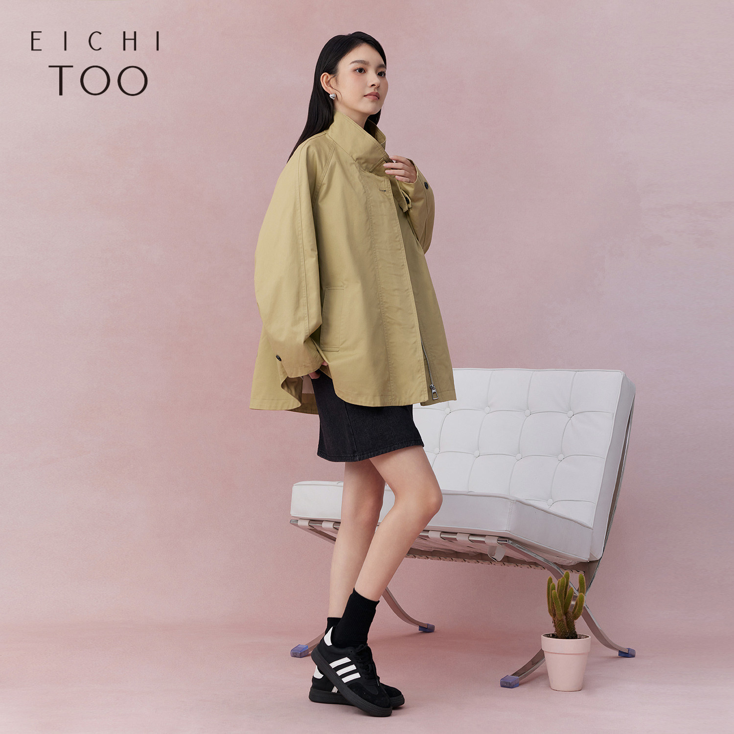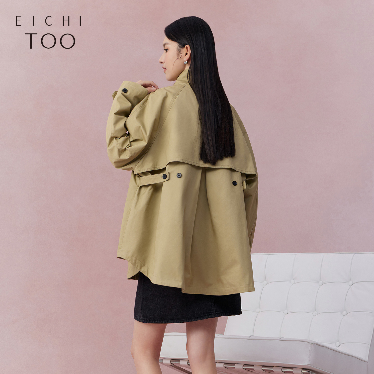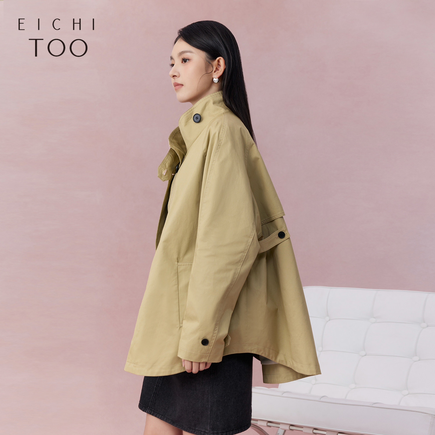 爱居兔春季新款经典卡其色复古立领宽松时尚风衣外套