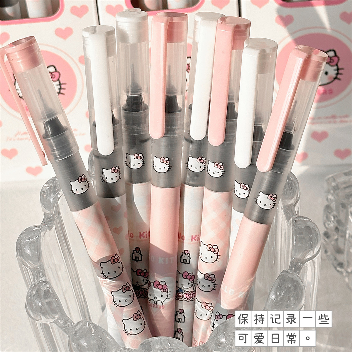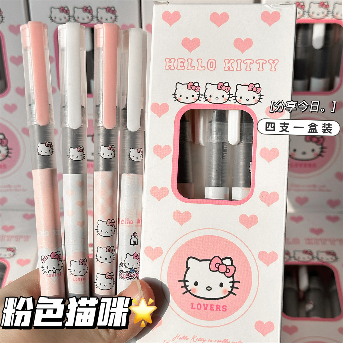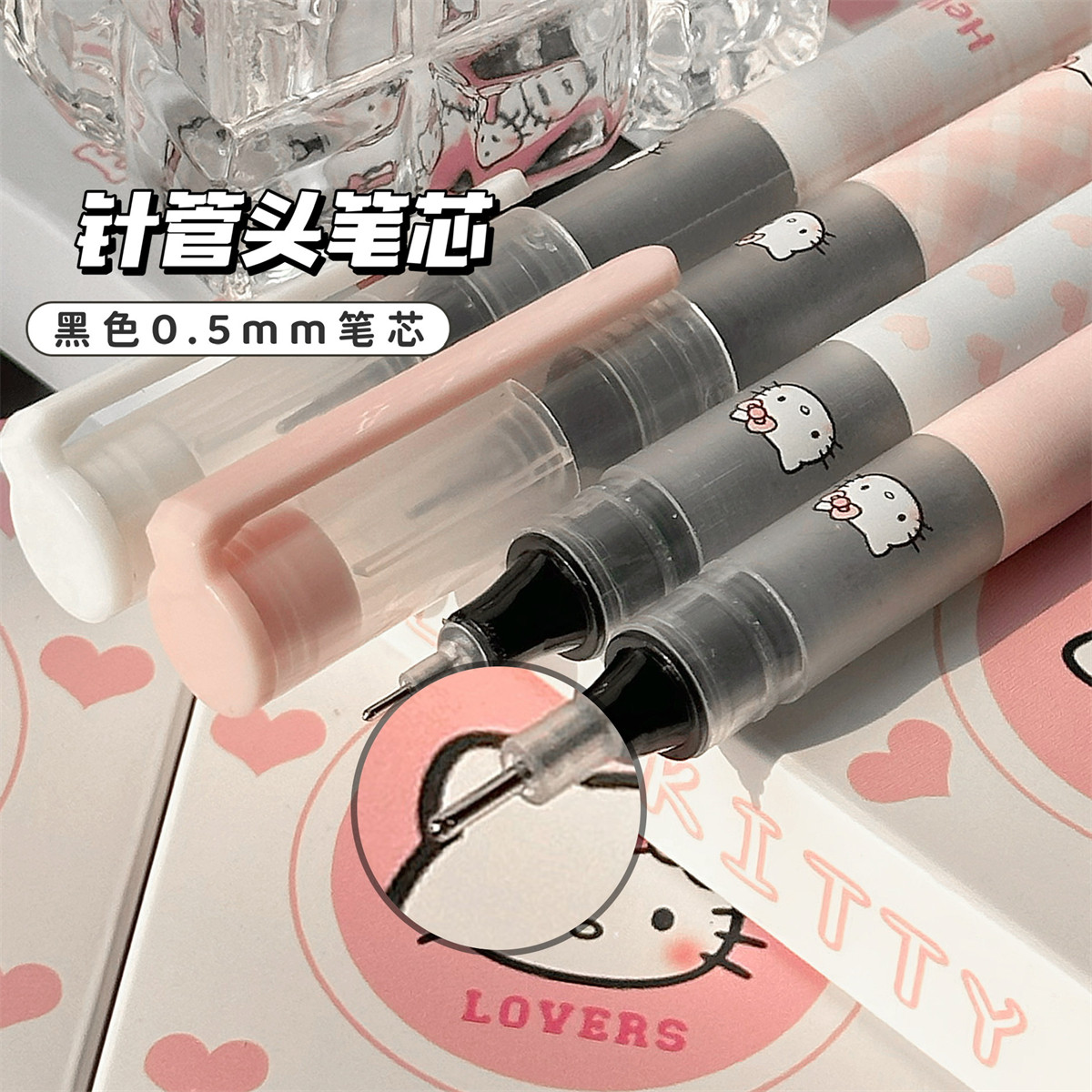 粉色猫咪大容量直液式走珠笔0.5黑色针管中性水笔便宜学生考试笔