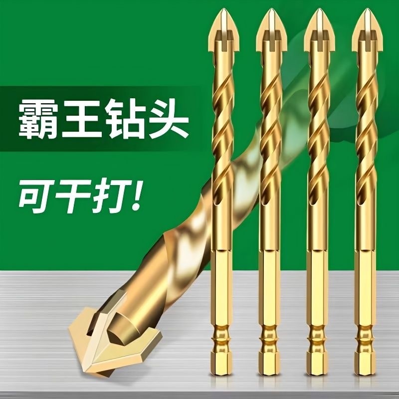 十字瓷砖钻头打孔四刃霸王钻高硬度三角钻玻璃冲击六角柄6mm钻孔