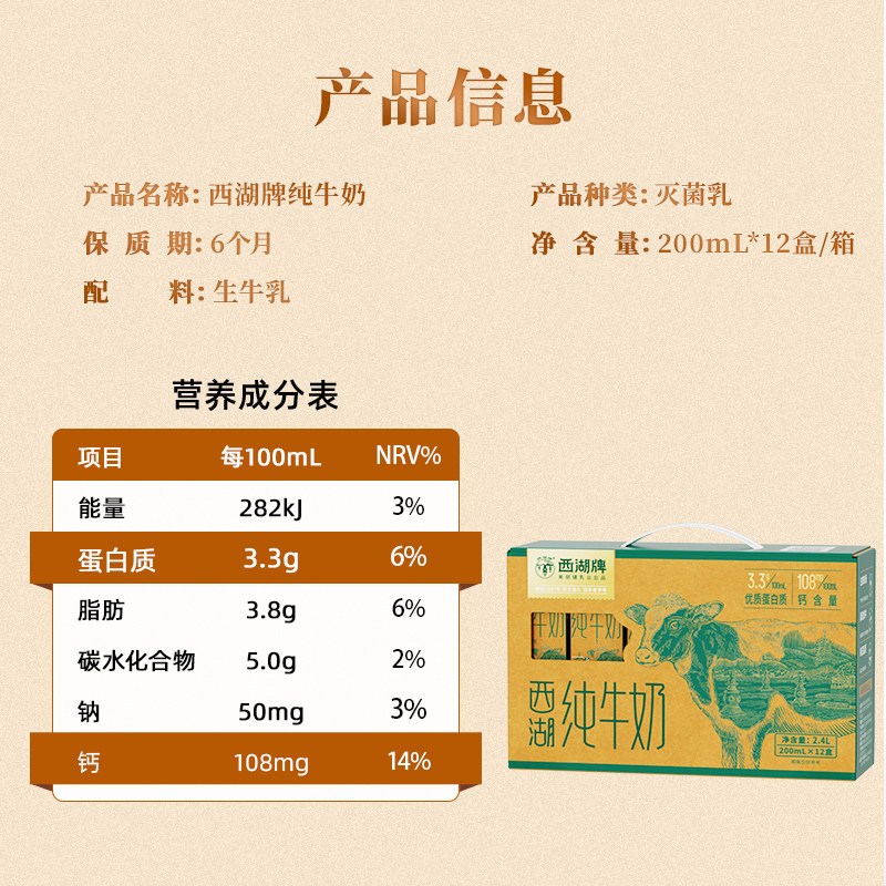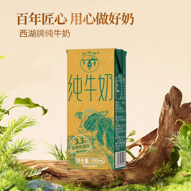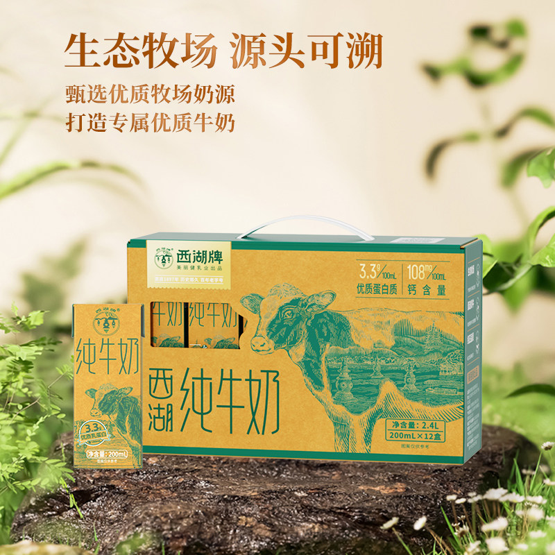 西湖牌纯牛奶儿童学生青少年成人营养早餐奶200mL*12盒整箱礼盒