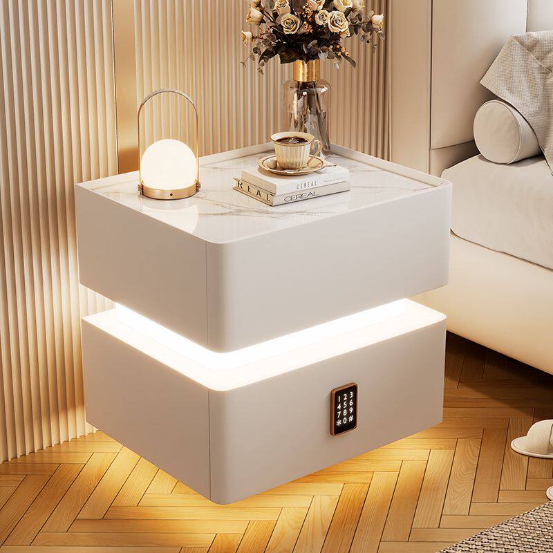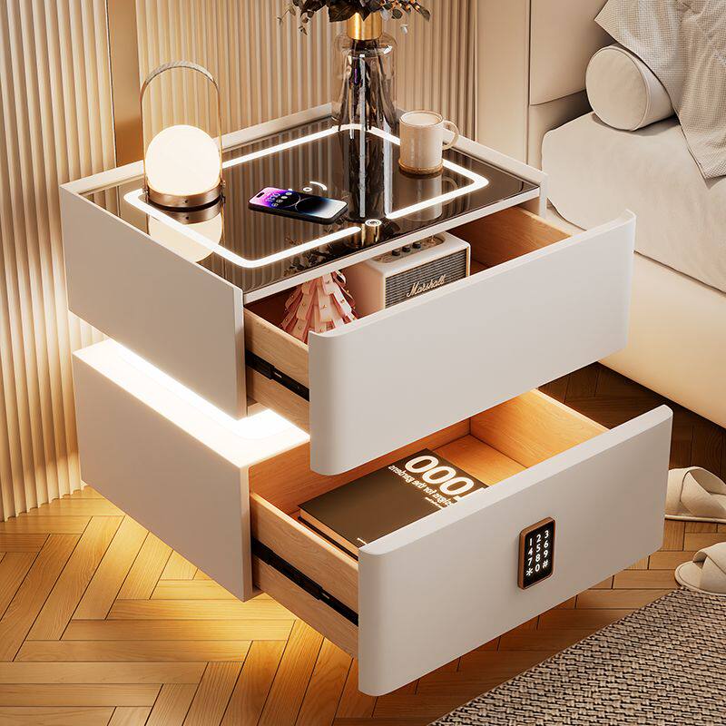 a智能床头柜2024新款轻奢带灯密码锁无线充电卧室高级感床边收纳