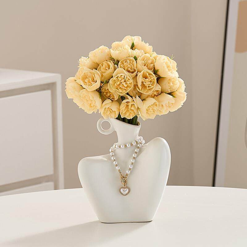 仿真花27头小牡丹假花手捧花家居摆件陶瓷锁骨女神花瓶