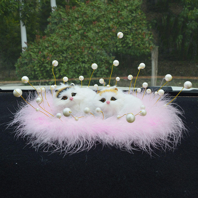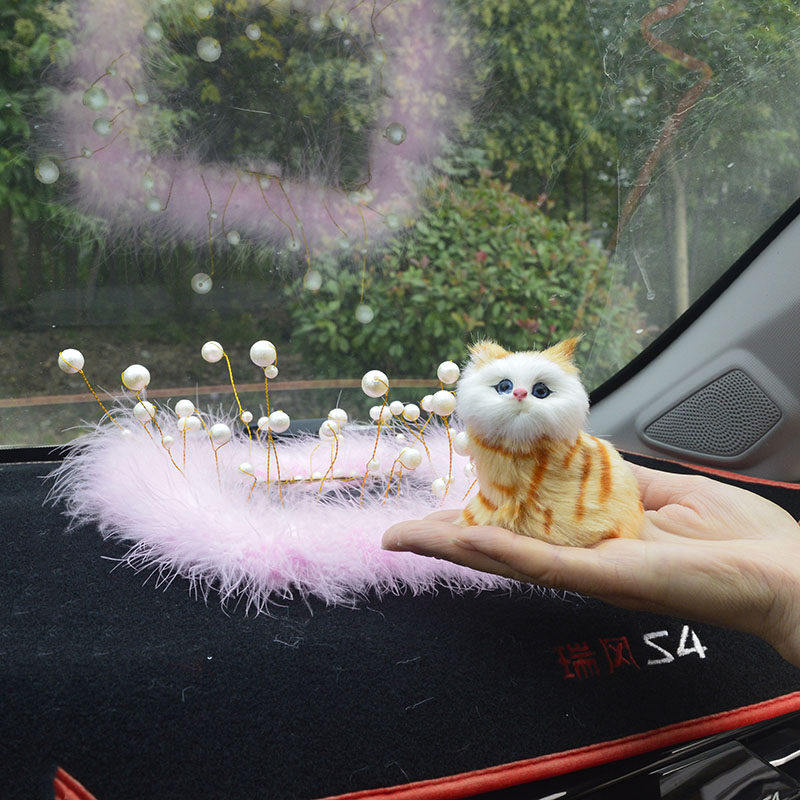 羽毛垫汽车摆件小车内饰品仿真小猫公仔模型中控台新款毛绒玩具