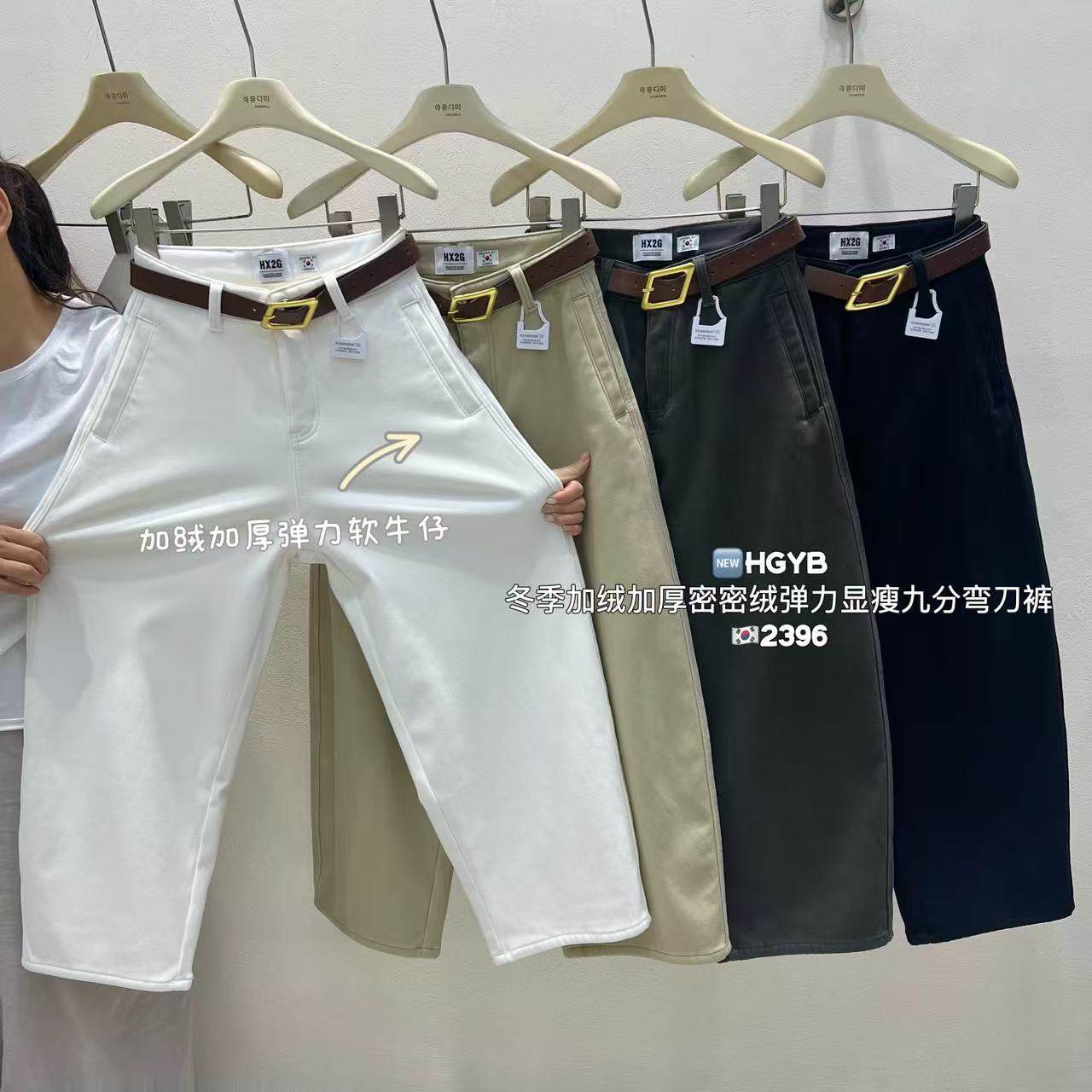 HX2G加绒加厚九分弯刀裤女2025冬季新款宽松显瘦弹力阔腿牛仔裤子