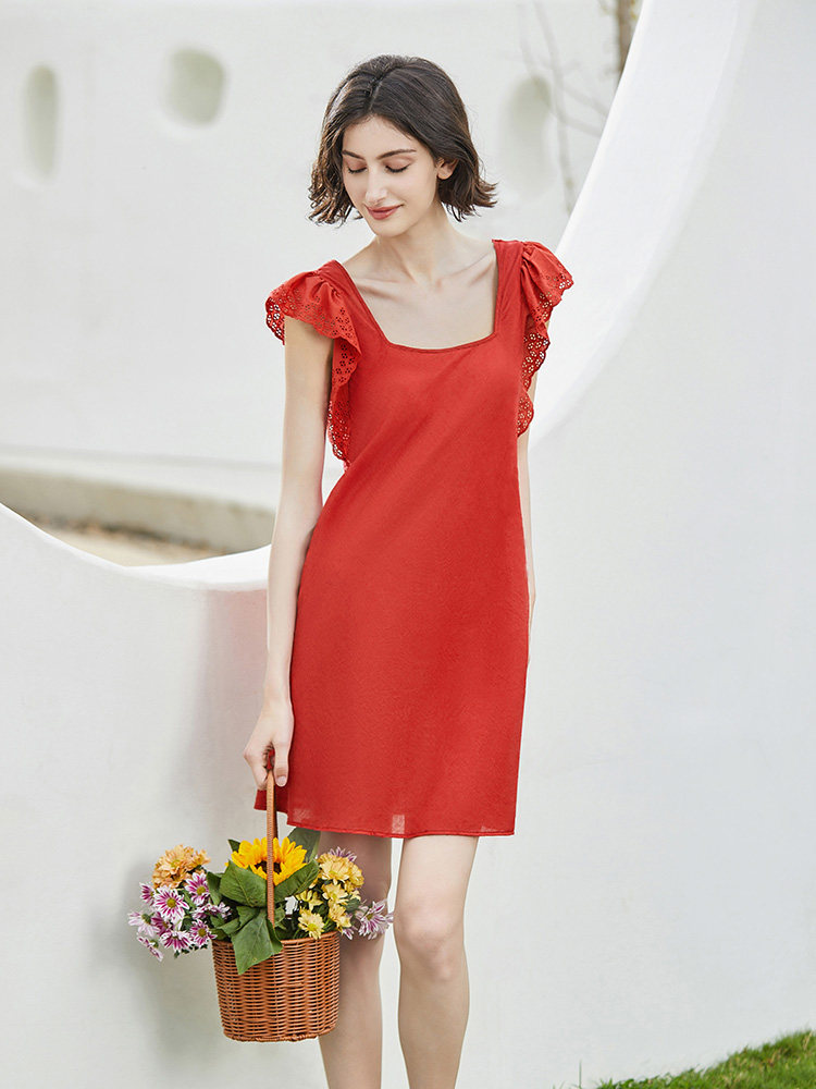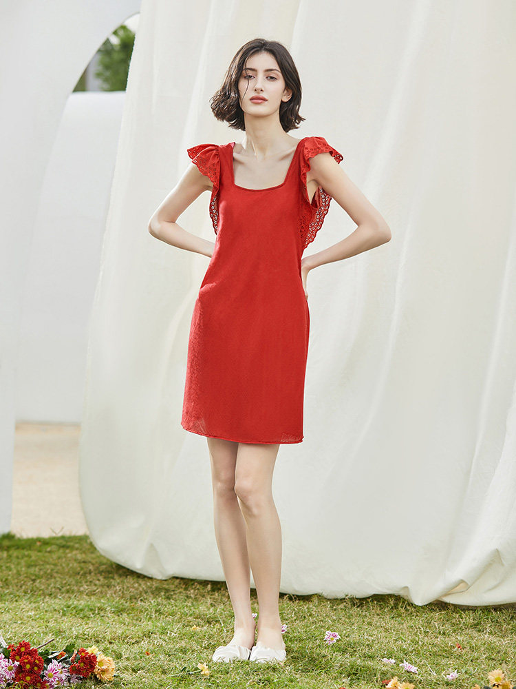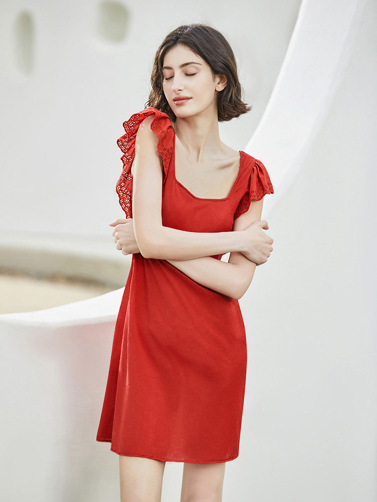 NoirTease夏季薄款天丝性感蕾丝睡裙女可外穿睡衣家居服红色纯欲