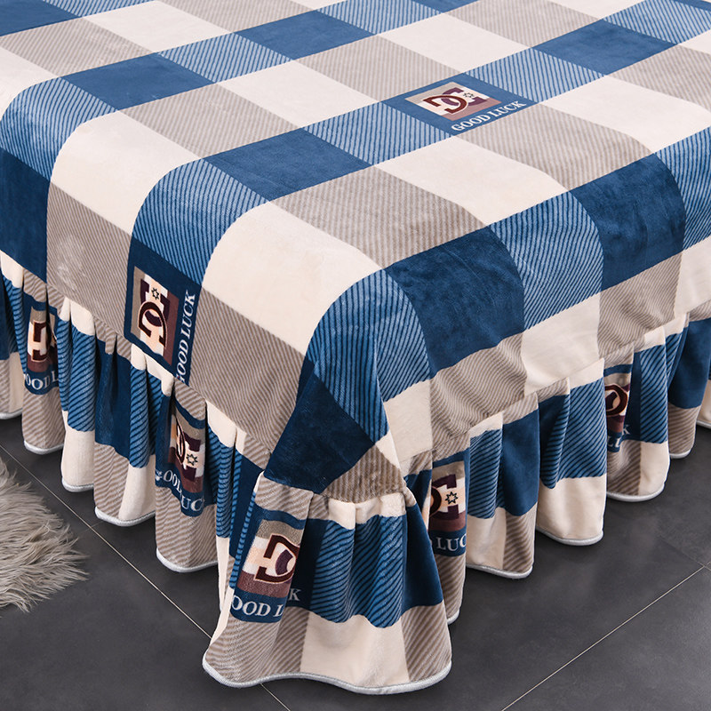 冬季加厚牛奶绒四件套床裙款双面被套床单高克重细腻三件套保暖