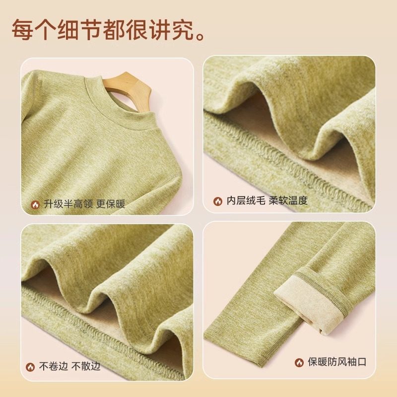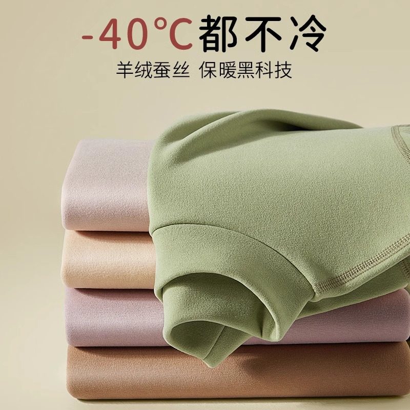 德绒保暖内衣套装女羊绒蚕丝加绒加厚半高领秋冬季秋衣秋裤打底衫