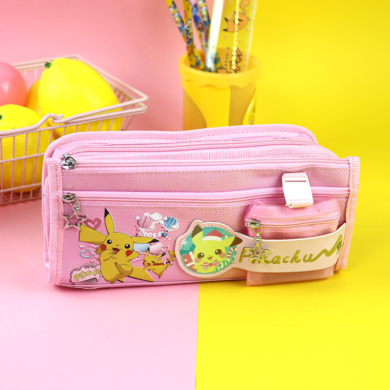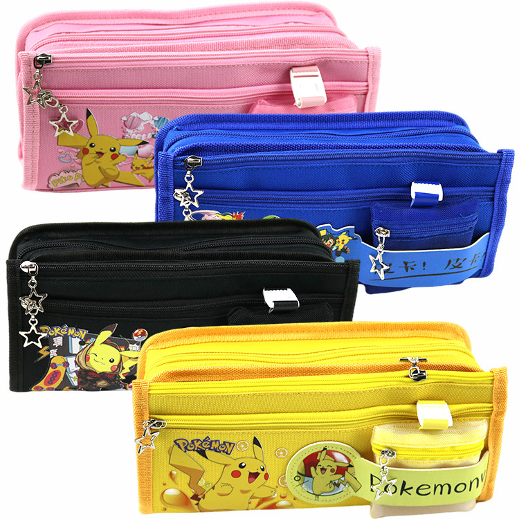 卡通动漫宠物小精灵皮卡丘大容量笔袋四层帆布中小学生文具铅笔盒