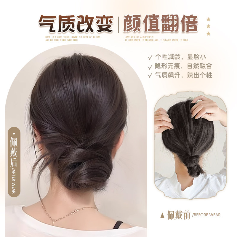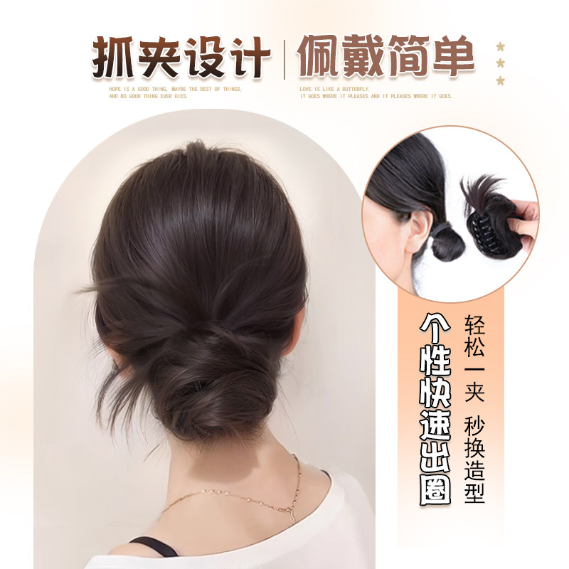 低扎丸子头假发鸡毛头抓夹盘发发包慵懒感造型头饰自然蓬松后脑勺