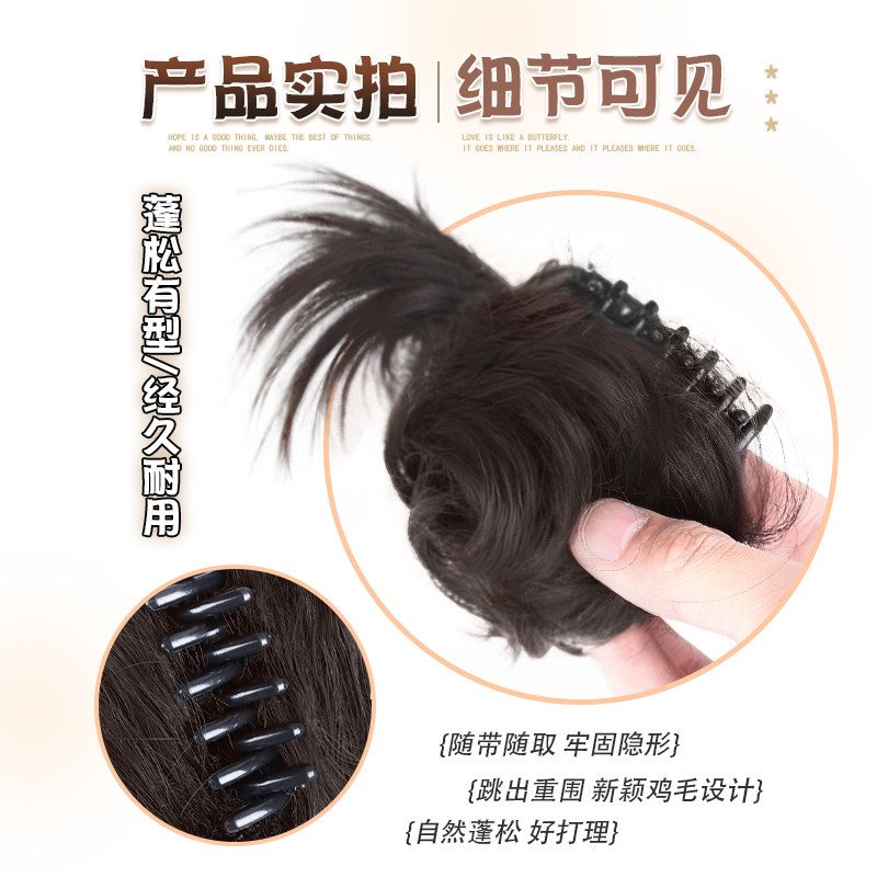 低扎鸡毛丸子头假发抓夹仿真发自然蓬松花苞毽子头盘发神器假发包