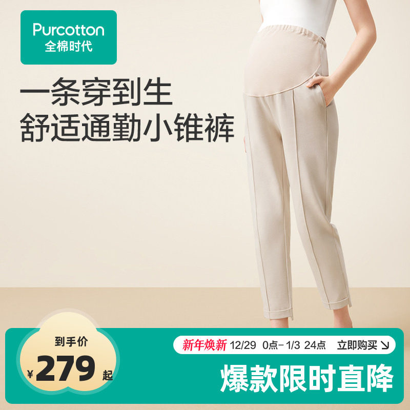 全棉时代孕妇裤子九分裤外穿针织棉休闲百搭宽松不勒肚子通勤穿搭