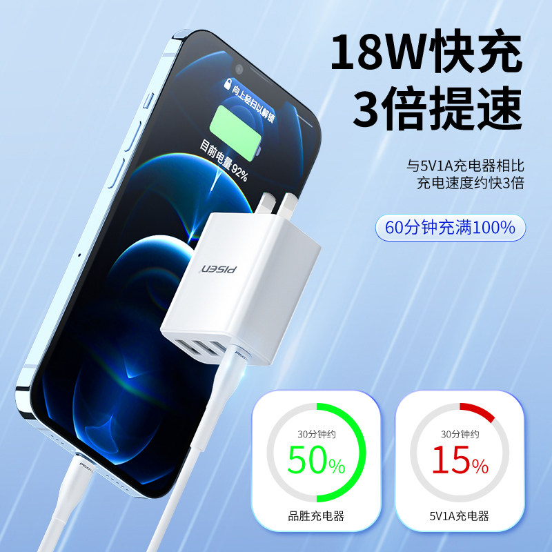 3C认证品胜多口充电器适用苹果安卓小米充电头typec三口pd快充usb插头四口三合一拖三QC快充通用手机平板冲电