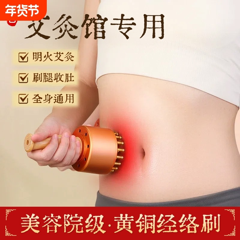 黄铜经络刷艾灸刷随身灸家用刮痧按摩燃揉腹肝胆推拿艾灸热敷专用