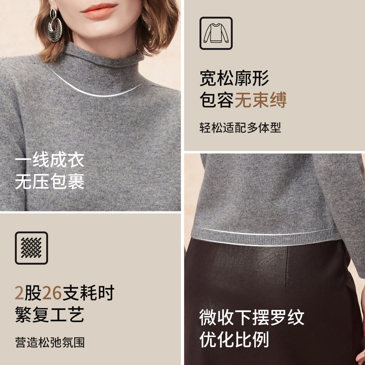 鄂尓半高2025秋冬新款安迪绒毛衣半高领套头衫洋气百搭款