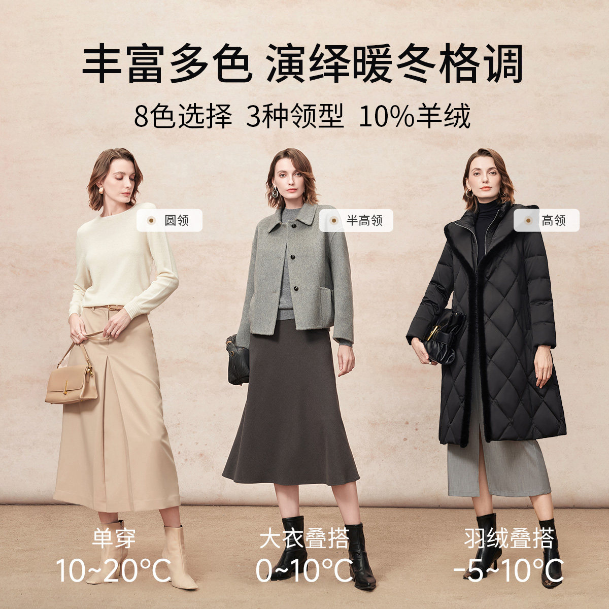 FINITY菲妮迪羊绒衫2025年冬季新款绒感圆领无缝一体针织毛衣女