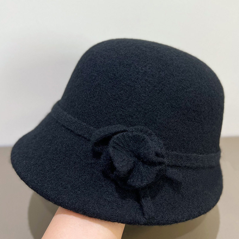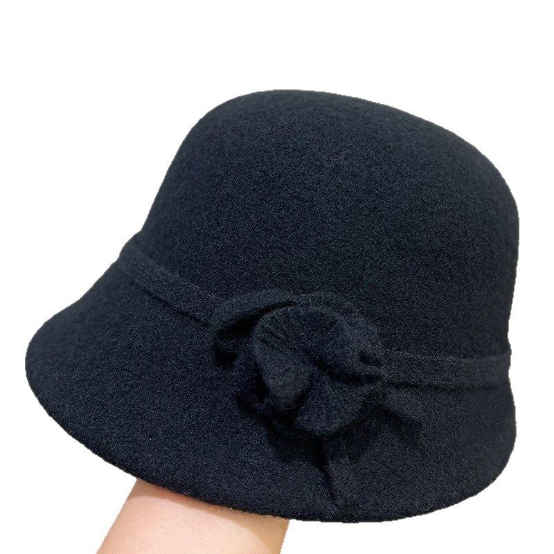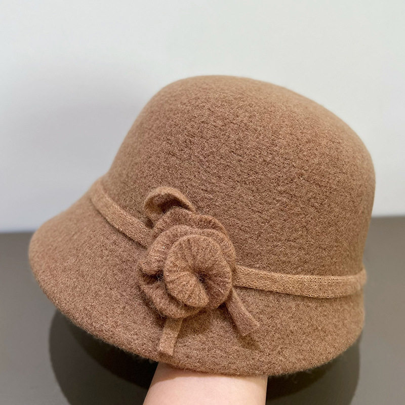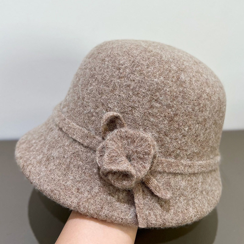 时尚韩版羊毛呢妈妈帽子女士秋冬季礼帽洋气百搭渔夫帽中老年盆帽