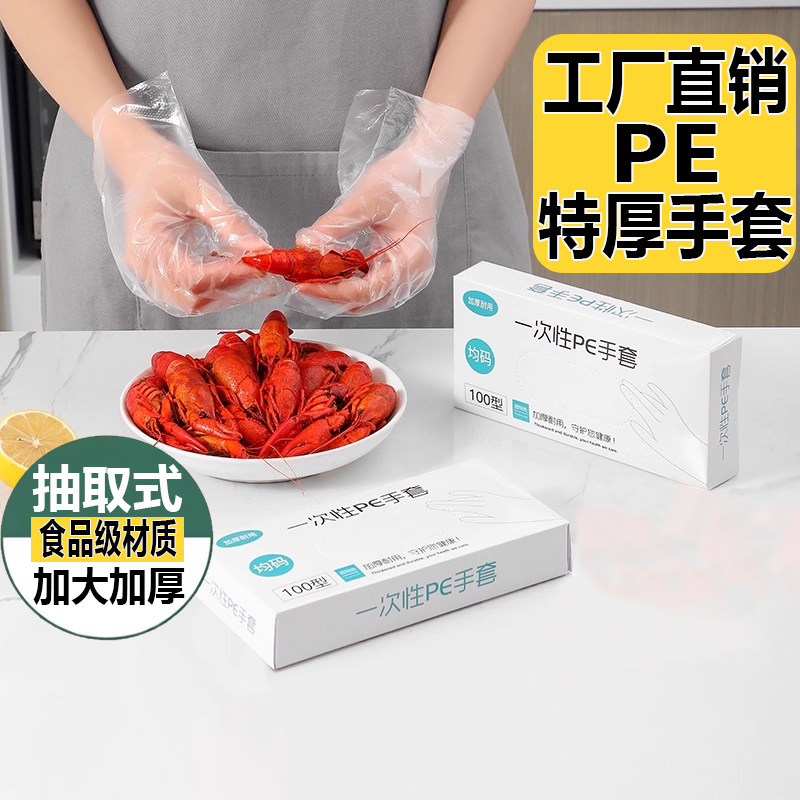 一次性手套pe食品级专用加厚耐用家用抽取式透明吃小龙虾餐饮盒装