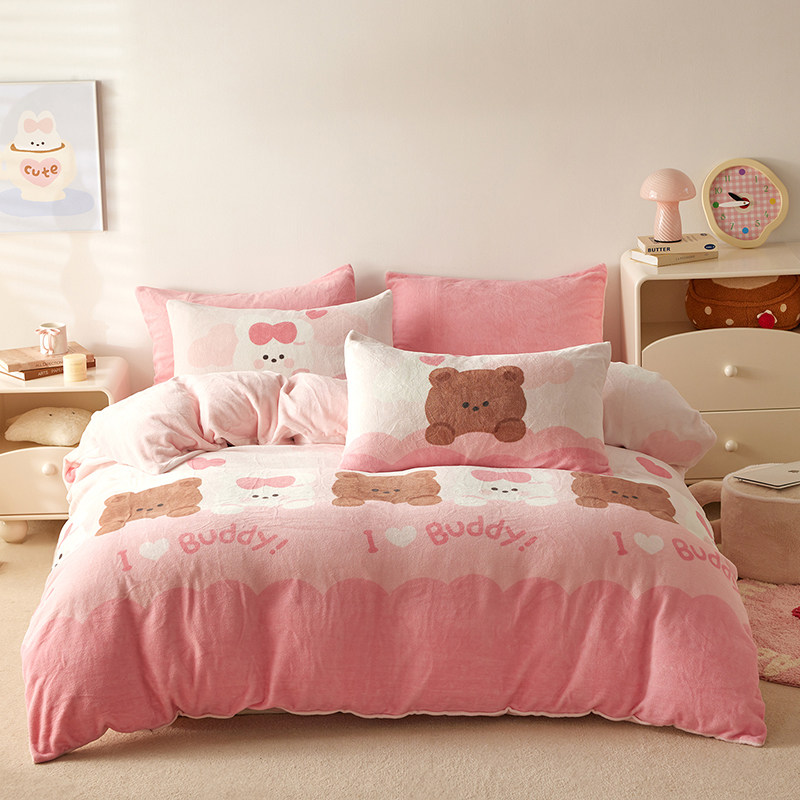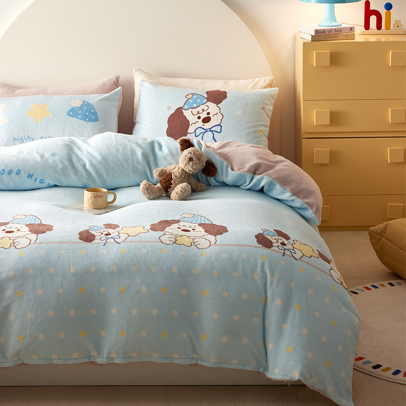 多喜爱暖绒卡通三件套/四件套秋冬暖暖绒套件儿童卧室床品