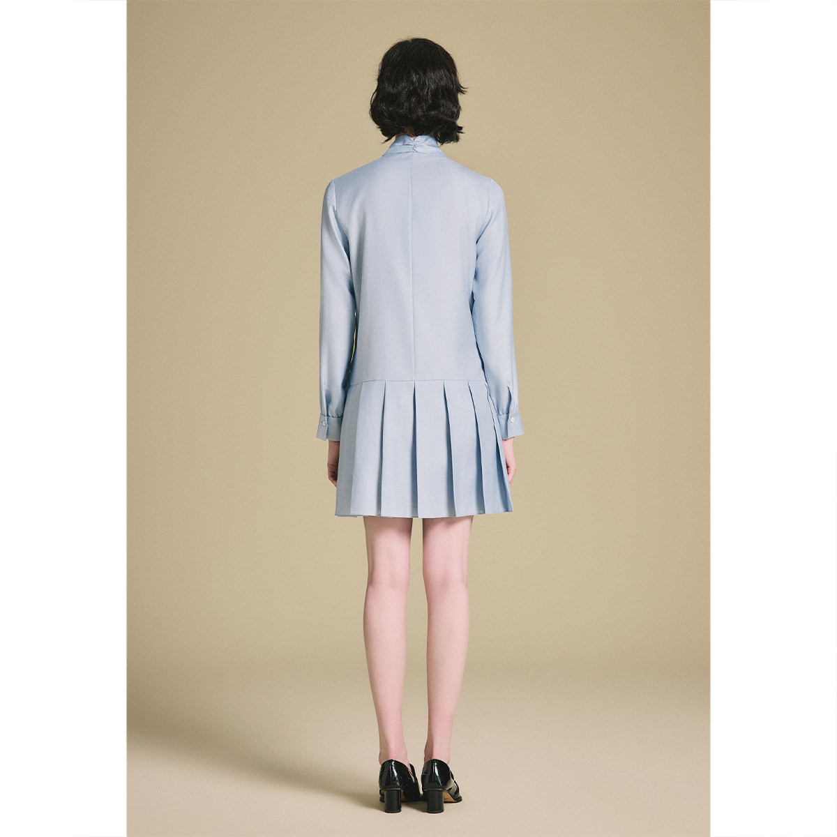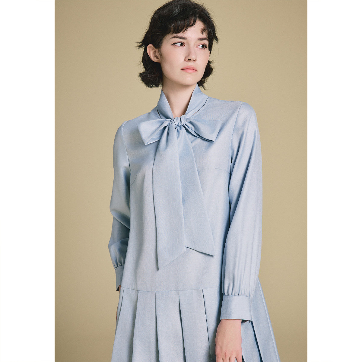 PSALTER诗篇时尚可拆本布领带直筒下摆压褶连衣裙春款