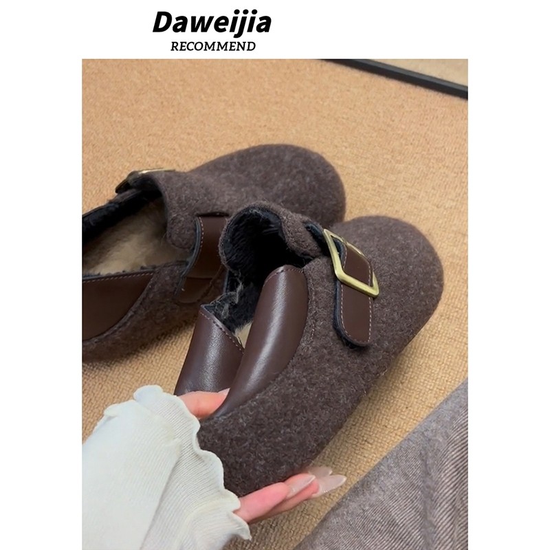 TATAFOCUS~加绒毛毛鞋韩版圆头皮带扣2025冬季新款勃肯鞋女35-28