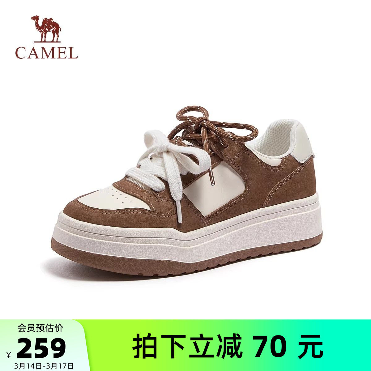 骆驼女鞋2026春季新款百搭厚底户外运动休闲鞋面包鞋休闲板鞋女款
