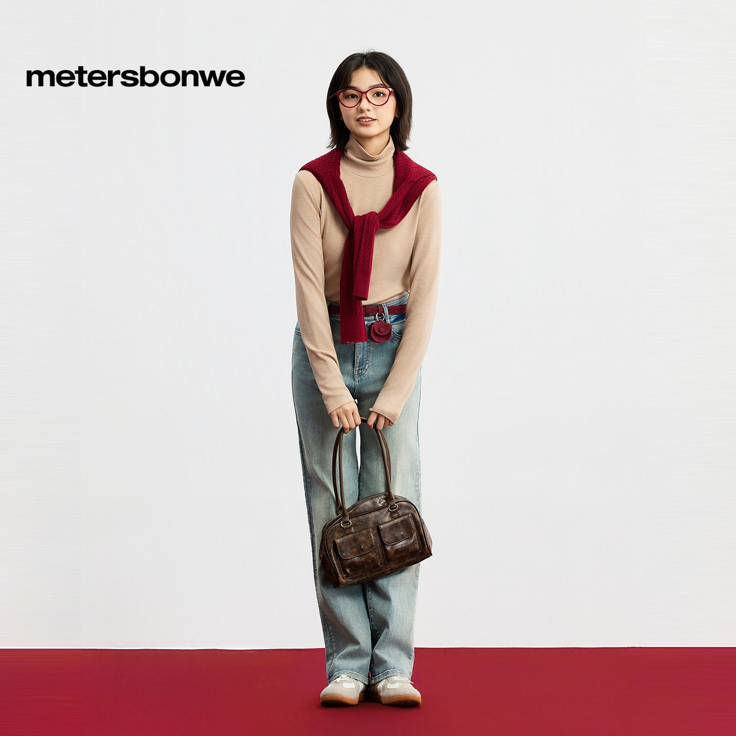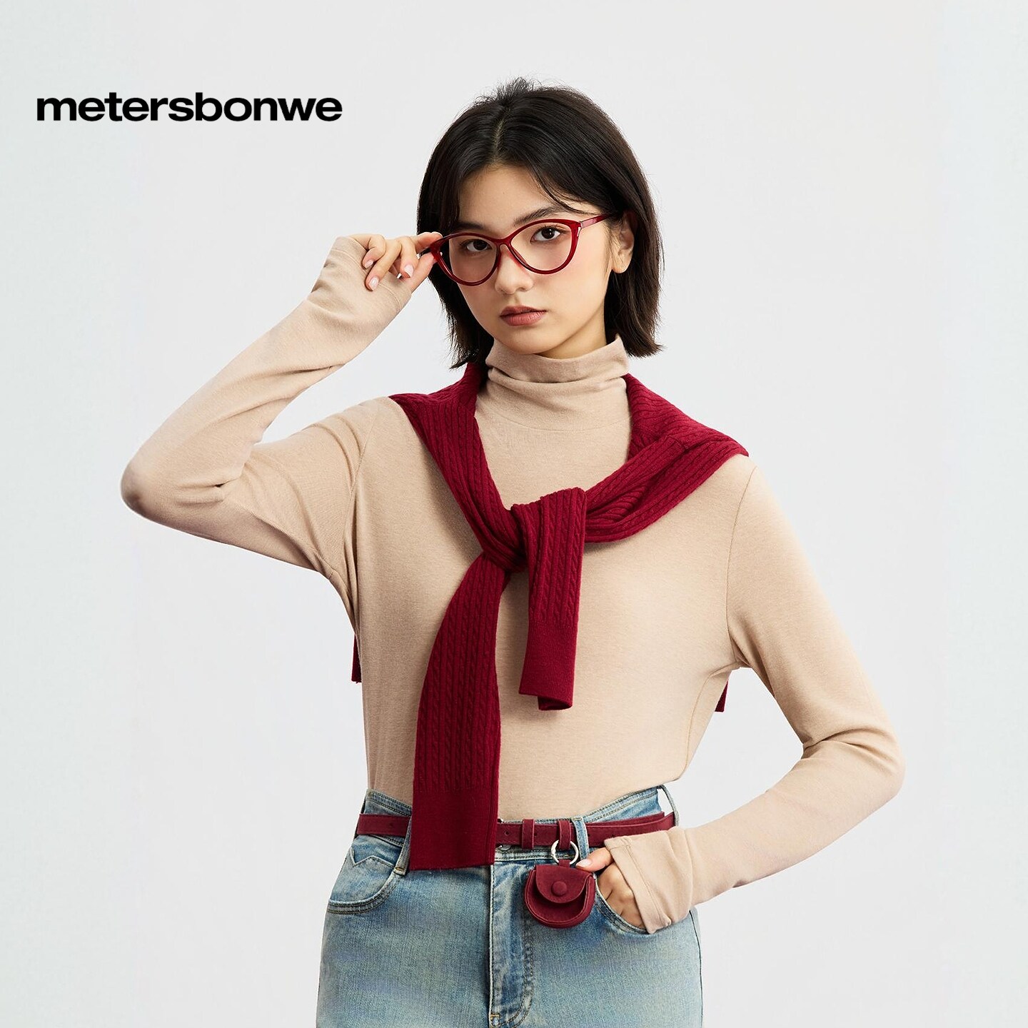 美特斯邦威T恤女2026春季新款时尚修身高领长袖软糯内搭打底衫