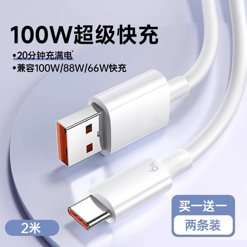 【100W超级快充】铂信type-c数据线6A适用华为mate60荣耀nova7tpyec小米vivo安卓手机tapyc充电器线usb冲66w