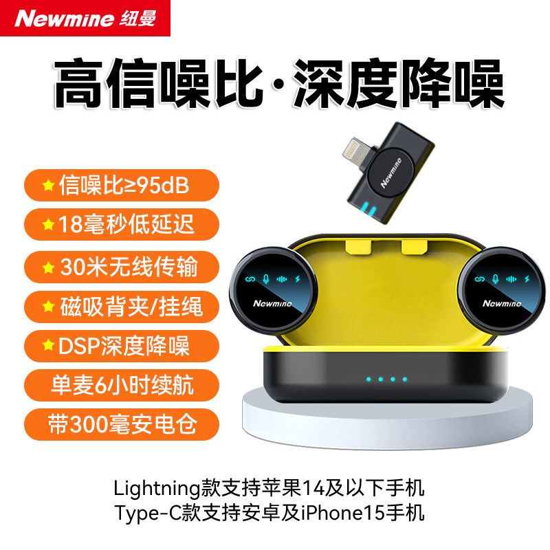 纽曼MC212无线领夹麦克风手机直播录音户外短视频收音麦降噪纽扣