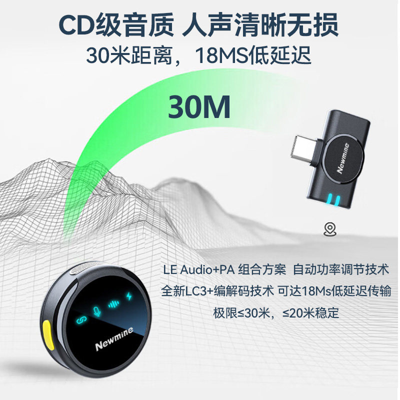 CD音质,一键降噪,磁吸夹,低延迟,300米收发