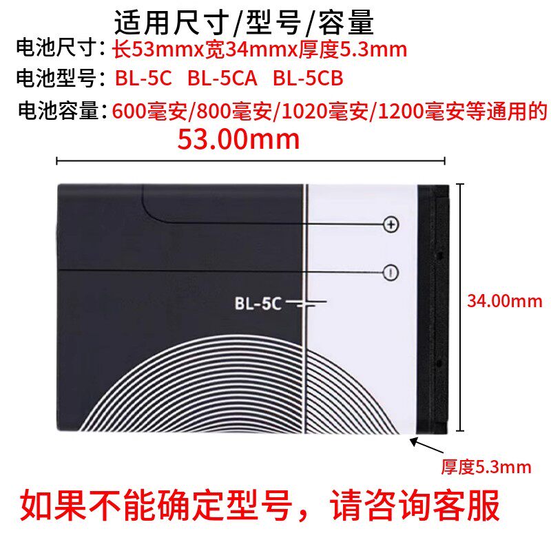 BL-5C锂电池适用nokia诺基亚bl-5c手机3.7V播放器游戏收音机电池