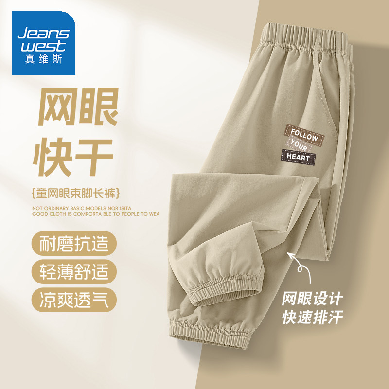 真维斯童装男童裤子2025新款夏装中大童透气速干裤薄款儿童运动裤