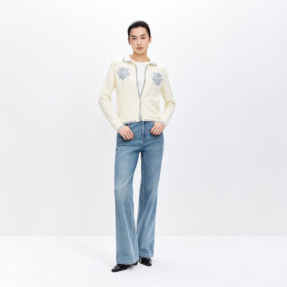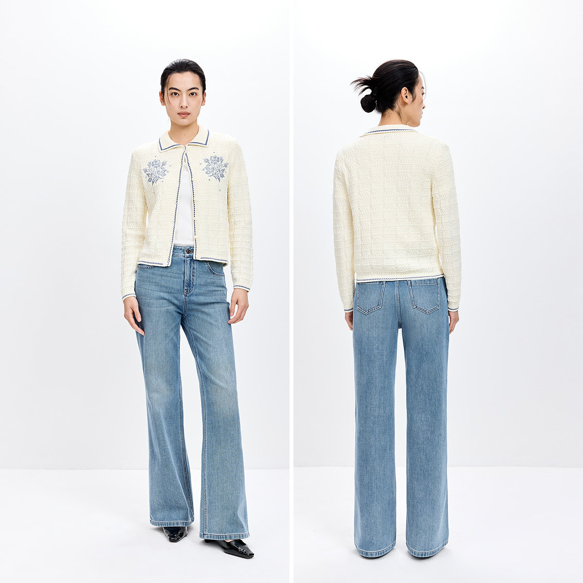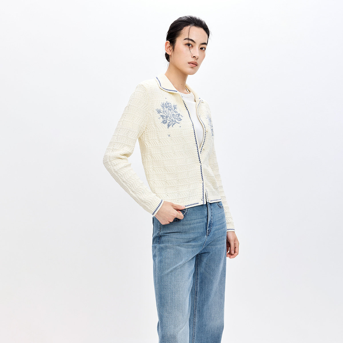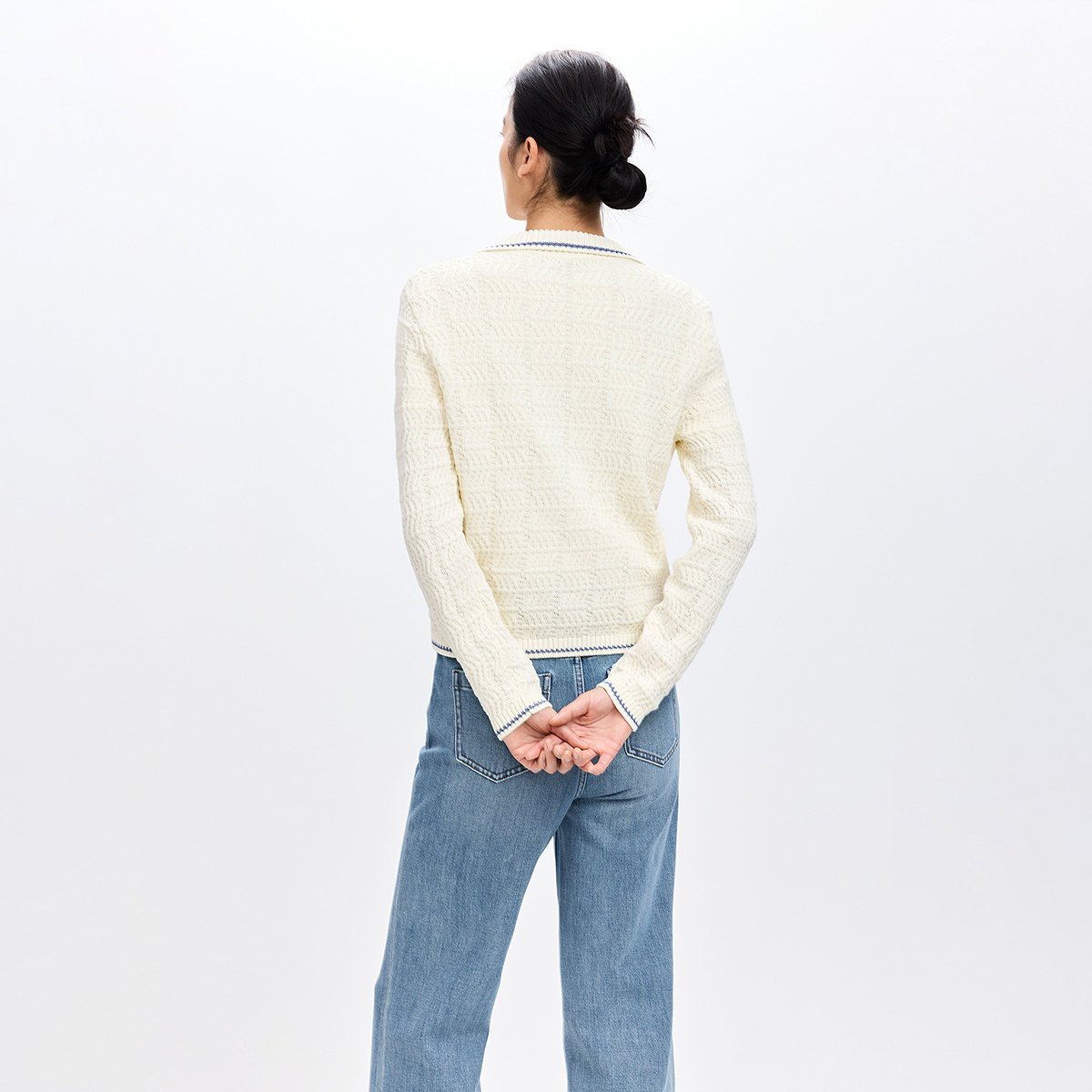 LILY2026春新款纯棉撞色翻领气质短款上毛衣薄外套白色针织开衫女
