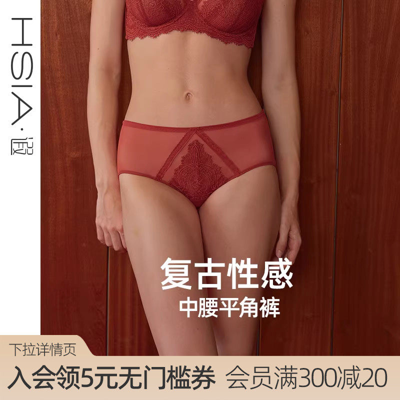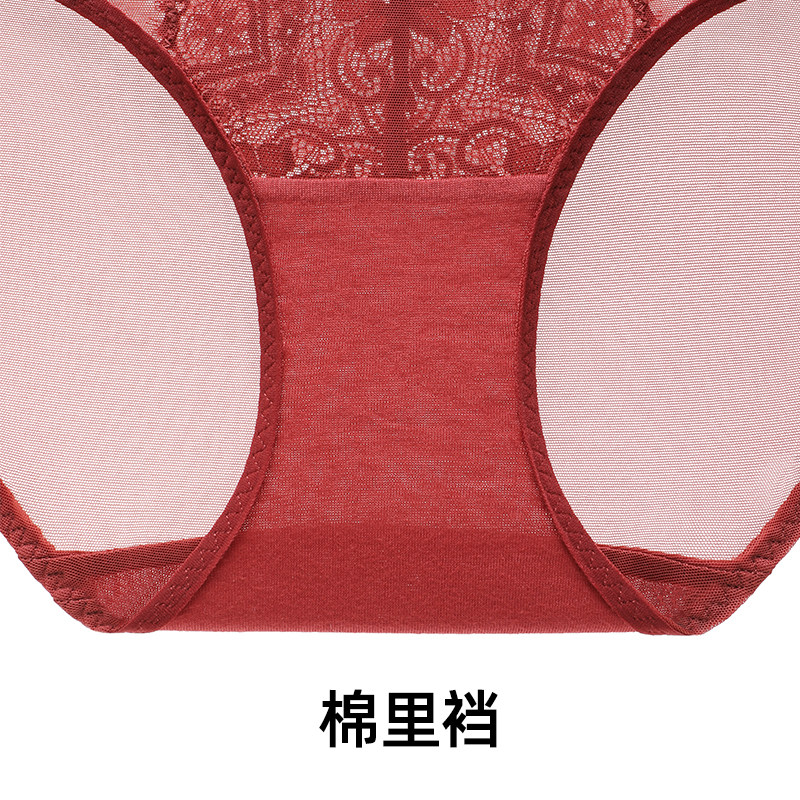 【Scarlett】遐中腰平角裤性感镂空纯棉裆速干超薄蕾丝红色内裤女
