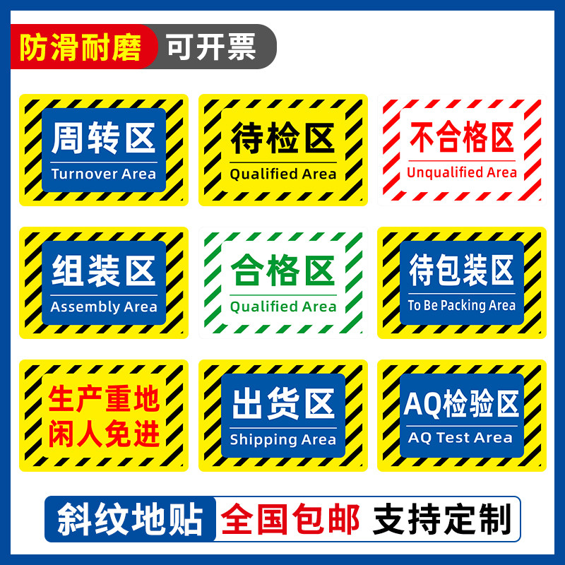 纸箱堆放区提示贴纸仓库生产车间分区位置地面标识牌厂房标签区域标牌工厂推车停放区指示贴周转区标示牌定制