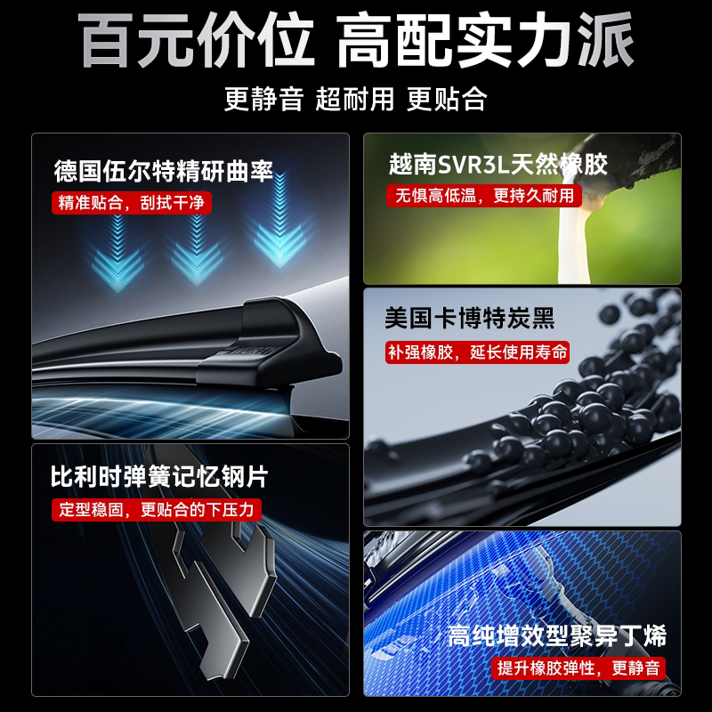 [合金钢片]六层胶条雨刮器汽车无骨雨刷静音双胶条前雨刷片原装