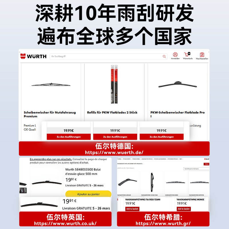 伍尔特雨刮器汽车雨刷器无骨静音适用大众奔驰宝马奥迪特斯拉胶条