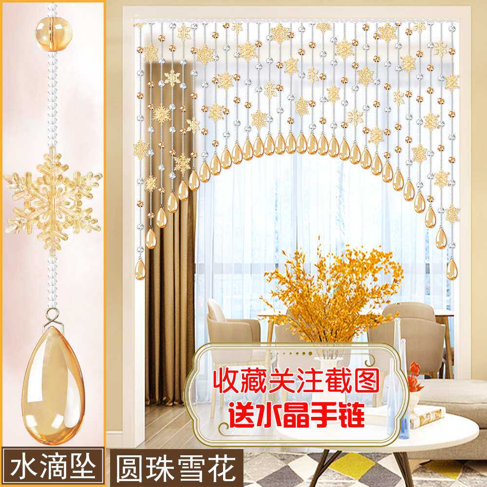 门帘水晶帘子珠帘卫生间隔断帘 客厅成品厨房弧形挂帘免打孔雪花