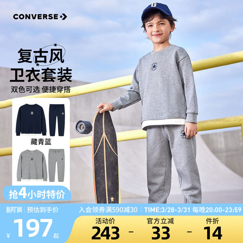 匡威童装男童套装2026春季新款女童休闲两件套长袖T恤长裤运动服